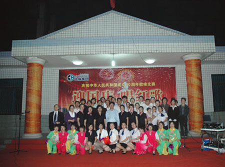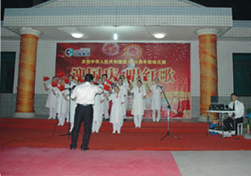 | 为迎接国庆佳节、庆祝祖国60岁生日、丰富员工生活, 9 月 25 日,我集团举办了以“迎国庆,唱红歌”为主题的职工歌咏比赛。来自全集团公司的100多名职工用嘹亮的歌声唱响时代的主题,唱出了去病人的豪迈。